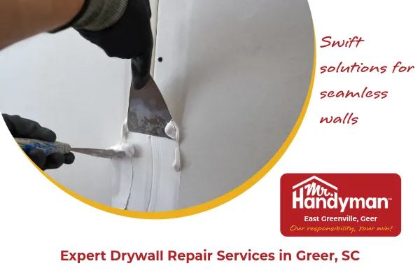 Don't let drywall damage disrupt your life. For top-notch drywall repair in Greer SC, contact Mr. Handyman. Our local team understands the unique needs of Upstate South Carolina residents and delivers prompt, efficient service. Schedule a free estimate today and experience the difference. Your walls deserve the best, let us handle the rest.