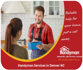 That’s just the beginning! Whether you need help with drywall repair in Denver, NC’s humid environment or some weatherproofing before the weather cools down, Mr. Handyman has you covered. Contact Mr. Handyman for reliable service today!